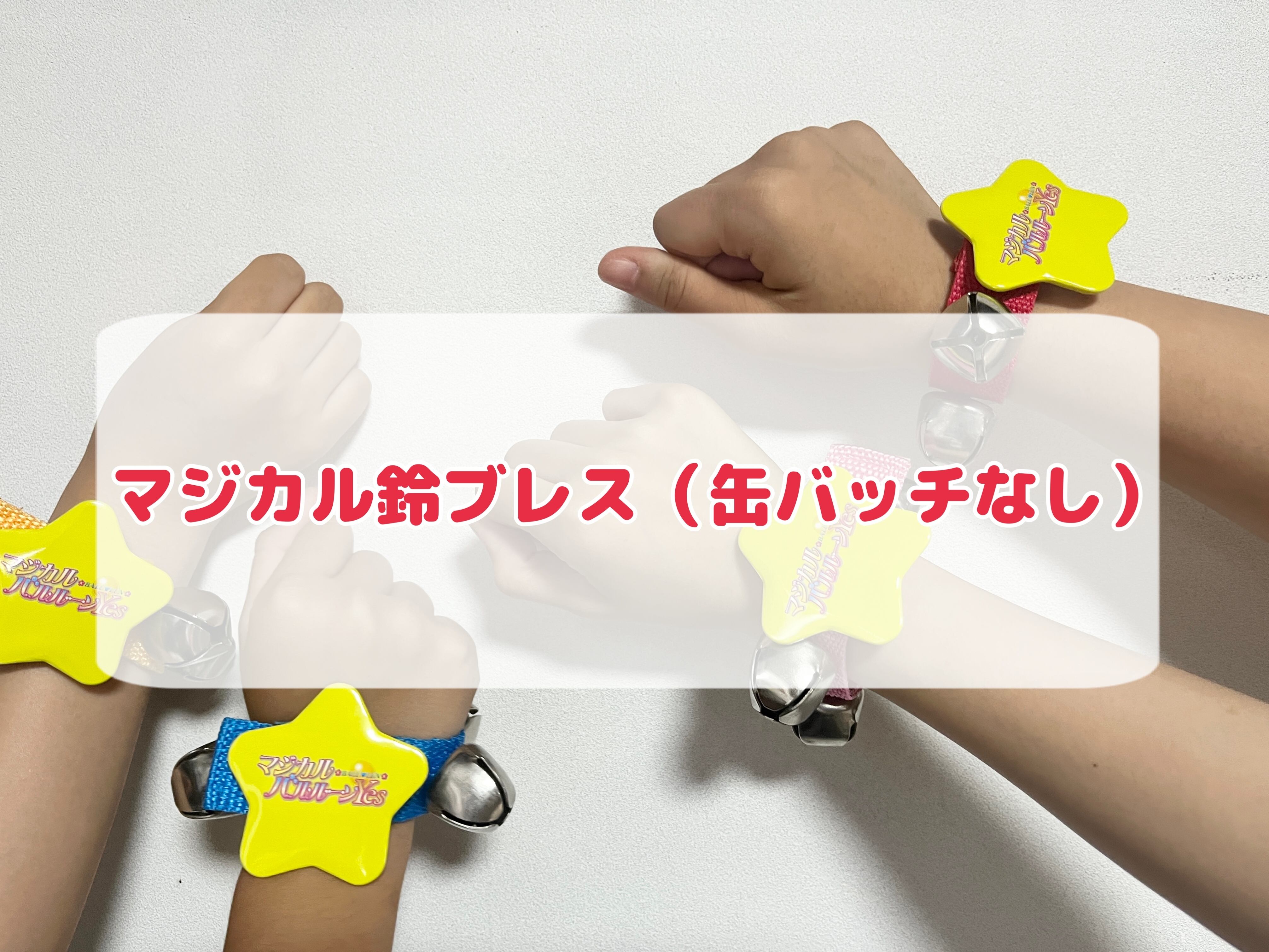 福島県のご当地アイドルパフォーマーマジカルバルルーンYesのショーで使用している【マジカル鈴ブレス】です。こちらの商品ページは画像の星の缶バッチはついておりません。鈴ブレス単品となっておりますのでご注意ください。